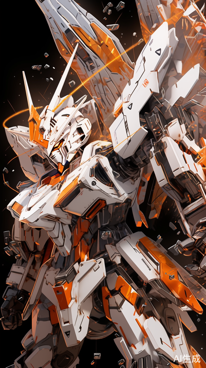 dynamic,photography,,fuji,,long,exposure,,a,white,and,orange,Gundam,mecha,,in,the,style,of,Gundam,,spread,the,wings,,lens,perspective,with,a,sense,of,story,,displayed,in,a,fighting,posture,,dispersion,,feature,article,,studio,environment,,fighting,posture,,octane,rendering,,soft,ambient,light,,with,high-definition,details,,metallic,texture,and,tension,composition,,close-up,niji,5,ar,9:16