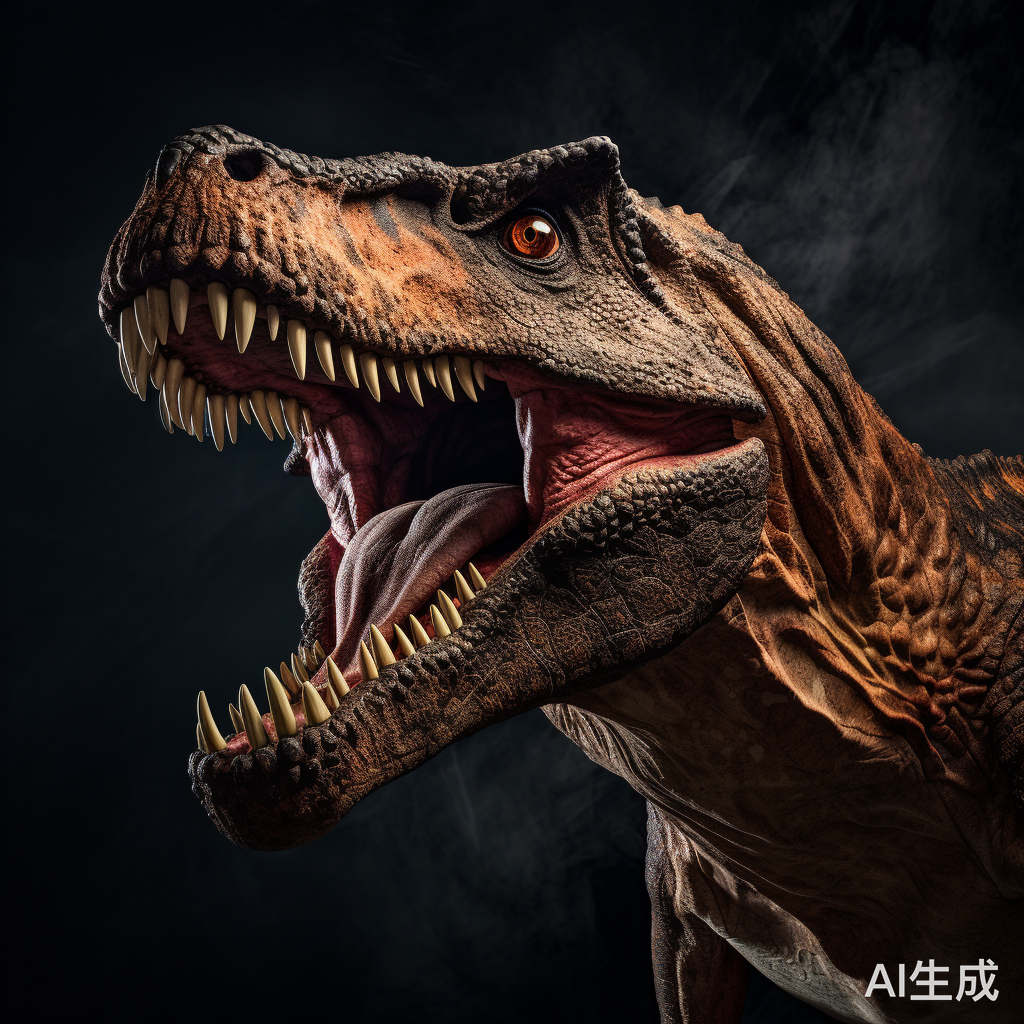 霸王龙 棕色 背景为森林 霸气 有视觉冲击感 画的一角有题字与印章